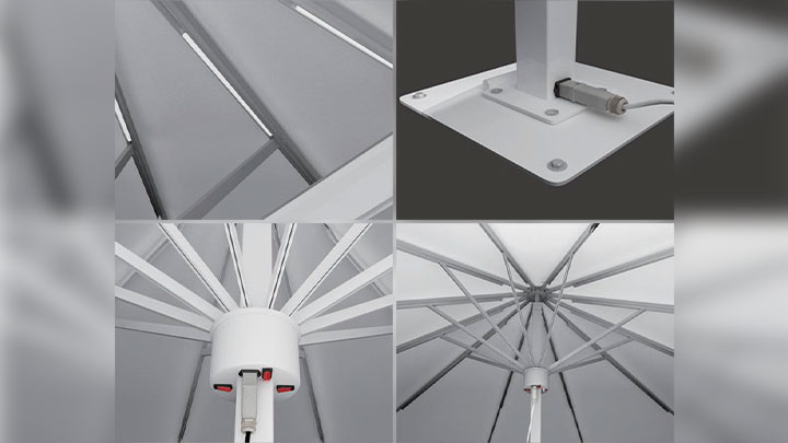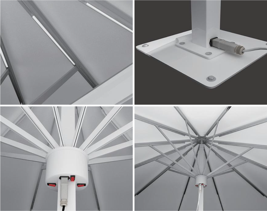 Designed for ultimate convenience, Jumbrella operates with just a tap—no cords, no cranks, just seamless automation. Its weather-resistant construction stands strong against sun, wind, and light rain, while integrated LED lighting sets the perfect mood for evening ambiance.